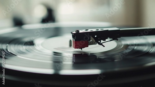 record, vinyl, turntable, needle, music, analog, audio, player, vintage, retro, classic, groove, sound, tone, spinning, disc, phonograph, playback, technology, entertainment, listening, melody, rythm, harmony, style, design, object, device, instrument, art, culture, old, antique, black, red, closeup, detail, texture, surface