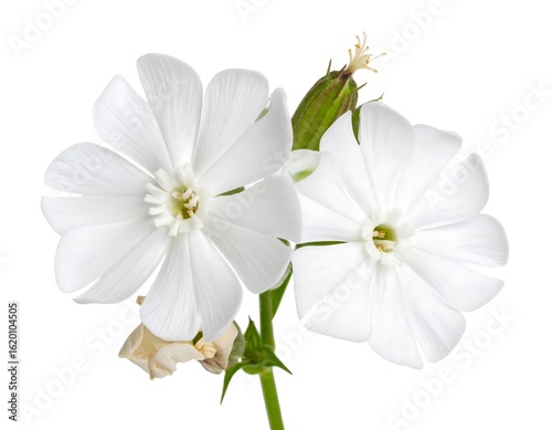 flower, white, flower petals, bloom, delicate, nature, plant, flora, closeup, isolated, studio, macro, blossom, symmetry, organic, beauty, soft, green, stem, bud, detail, botanical, image, photo