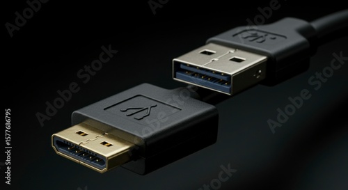 Close-up of two USB connectors, showcasing gold-plated pins and black cable