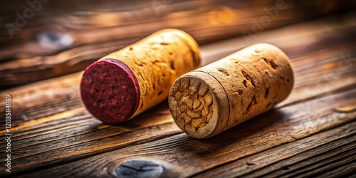 Close-up of Two Wine Corks on Rustic Wooden Surface - Natural Texture Stock Photo