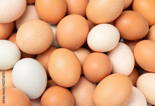 closeup, various, chicken, egg, brown, white, pile, food, fresh, organic, protein, farm, healthy, group, ingredient, raw, nature, background, breakfast, eggshell, shell, cooking, easter, yellow, eat, agriculture, hen, poultry, product, nourishment