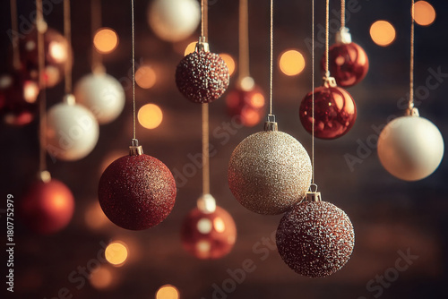 christmas, ornament, bauble, festive, holiday, decoration, glistering, shiny, red, white, gold, silver, hanging, bokeh, light, celebration, season, winter, joy, merry, traditional, sparkle, sphere, round, glasses, tree, decor, background, blurred, warm, glow, elegant, beautiful, classic, party, event, happy, december, spirit, home, interior, design, art, display, collection, variety, different, texture, surface