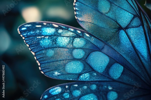 butterfly, wing, blue, macro, nature, insect, detail, texture, closeup, beautiful, vibrant, colourful, fantasy, magical, aethereal, delicate, intricate, pattern, art, photo, wildlife, animal, lepidoptera, shimmer, gleam, scale, sunlight, light, shadow, background, stunning, exquisite, beauty, wonder, wonders