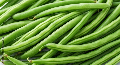 Close-up of vibrant green string beans, freshly picked and arranged
