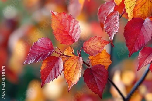 close-up of vibrant red and orange autumn leaves on a vine in a serene natural setting