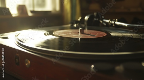 Close-up of Vinyl Record Player with Sun Light