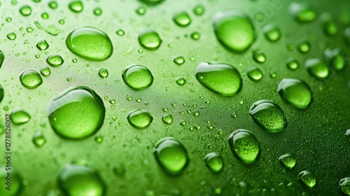 Close-Up of Water Droplets on a Green Surface with Textured Background