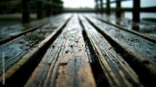 Close-Up of Wet Wooden Planks on a Pier in Soft Natural Light