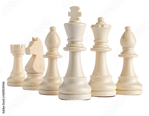 Close-Up of White King and Queen Chess Pieces with Shallow Depth of Field, Minimalist Look, Isolated