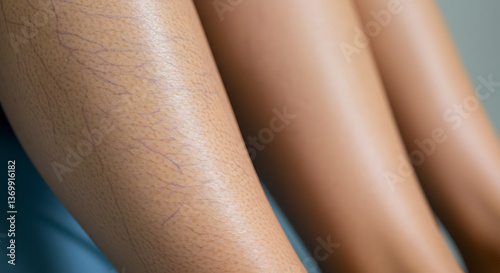 closeup, dermatology, health care, beauty, aesthetic, skincare, varicose veins, capillary, circulation, tanned skin, brown skin, hi-res, photo, hair removal, body image, natural beauty, education, medical textbook