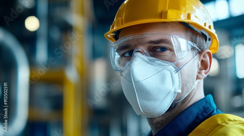 Close-Up of Worker Wearing Protective Mask for Industrial Safety and Respiratory Protection