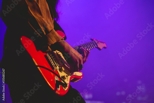 closeup, guitar, red, latin, live, race, latino, young, shirt, hand, guitarist, colourful, light, music, copy space, background, purple, lifestyle, musician, rock, playing, boy, concert, guy, play, performer, musical, artist, sound, teenage
