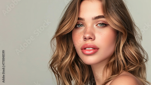 Close-up of Young Woman with Clear and Healthy Skin on Neutral Background, Skin Care Concept