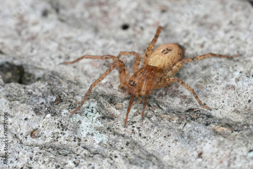 Closeup on a Buzzing spider, Anyphaena accentuata sitting on wood