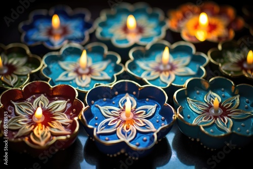 close-up on hand painted diwali diyas