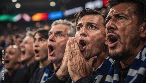 Closeup on tense supporters gasping in disbelief the focused fan groups faces capturing raw emotion as the rest fades into soft bokeh.