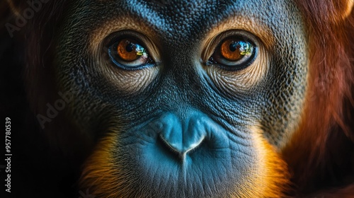 Close-Up Orangutan Photo, Endangered Primate, Protected Species, Wildlife Conservation, Orangutan in Nature, Endangered Species Photography, Orangutan Portrait, Rare Wildlife Image, Conservation Aware