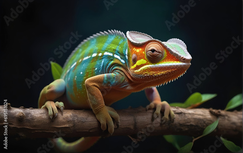 Close-up photo Exotic Reptile of chameleon with various colors of nature