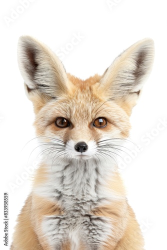 Close-up photo of a fox's face on a white background, suitable for use in wildlife or nature-themed contexts