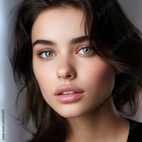 Close-up photo portrait of a beautiful charming woman with natural makeup