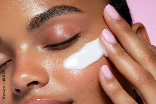 Close-up photograph of hands gently applying a moisturizer - Ideal for skincare ads and beauty product promotion