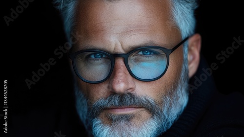 man, portrait, mature, closeup, face, eye, goggles, beard, grey, hair, serious, expression, focused, stylish, attractive, photogenic, male, adult, gentleman, fashion, modern, confident, seriousness, confidence, intense, detail, portraiture, facial, feature, style, closeup, sharpened, lighting, dark, background, studio, photo, image, professional, elegant