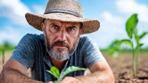 farmer, agriculture, rural, countryside, outdoors, nature, plant, growth, dirtied, work, field, crop, beard, hat, man, adult, face, portrait, sun, day, summer, land, environment, gardening, cultivation, planting, harvest, farm, plantation, cultivate, grow, sow, reap, generating, vegetation, flora, greenery, landscape, scenery