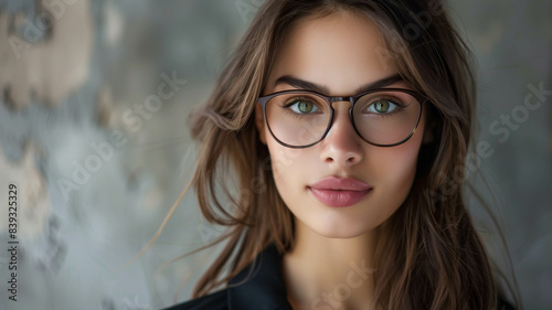 Closeup portrait of a beautiful woman wearing eyeglasses, professional attire