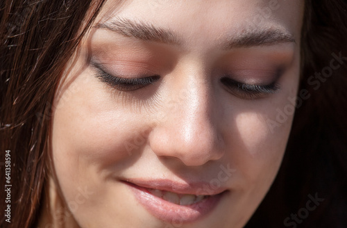 Close-up portrait of a beautiful young woman with eyes closed
