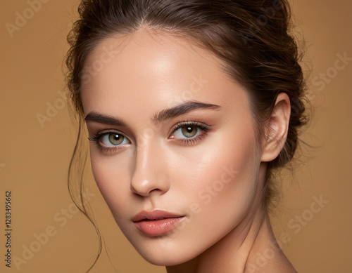 Close-up Portrait of a Beautiful Young Woman with Natural Makeup