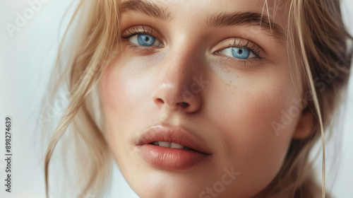 closeup, portrait, beauty, female, face, skin, soft light, blonde hair, detail, emotion, peaceful, intimate, eye, lip, minimalism, simplicity, natural beauty, calmness, feminine, elegance, gaze, profile, realistic, engaging, facial features, expression, purity, fresh, innocence, youth, gentle, subtile, poised, contemplative, model, smooth
