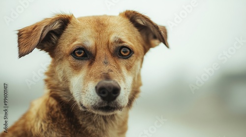 dog, canino, brown, fur, eye, muzzle, nose, mouth, whisker, pet, animal, mammal, portrait, head, face, looking, curious, alert, friendly, sweet, adorable, cute, soft, fluffy, gentle, loyal, companion, friends, love, affection, outdoors, nature, day, light, shadow, blurred, background, white, grey