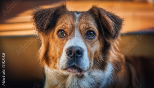 CloseUp Portrait of a Cute Dog in Soft Focus, Radiating Friendly Eyes and Fluffy Textures, Set against a Warm Neutral Background, Capturing the Charm and Innocence of Mans Best Friend.