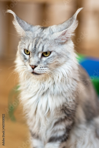 Close-up Portrait of a Maine Coon Cat Close-up Portrait of a Maine Coon Cat with Intense Gaze