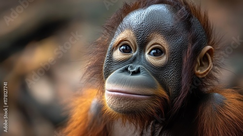 Close-up portrait of a monkey's face with blurred background