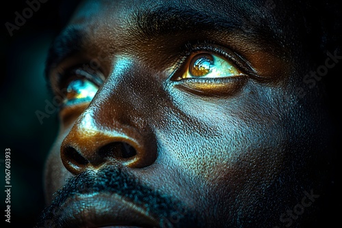 relief, closeup, portrait, male, gaze, skin, eye, face, detail, texture, thoughtful, expression, intense, sharpened, lighting, shadow, depth, emotion, contemplation, human, looking, serious, introspective, masculine, iris, pupil, colourful, high-coloured, contrast, sharpness, artistic, beauty, individuality, character, modelling, uniqueness, light, perspective, calm, observation, insight, vision, awareness, facial