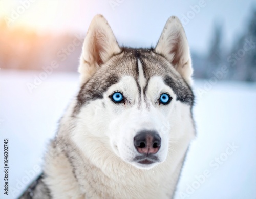 Close-up portrait of a Siberian Husky with striking blue eyes
