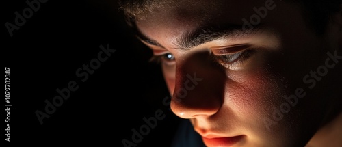 portrait, closeup, young men, thoughtful, dark, moody, introspective, serious, pensive, face, eye, lighting, dramatic, emotion, contemplation, mystery, shadow, intensity, profile, male