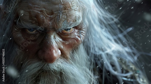 mystic, digital photography, detailed, hi-res, sharp, high-quality, dramatic, portrait, fantasy, artwork, forehead, long hair, power, wrinkle, epic, hair, man, fantasy art, face, ice, old, beard, ancient, serious, illustration, wiseman, mouth, digital artwork, art, winter, intense, light