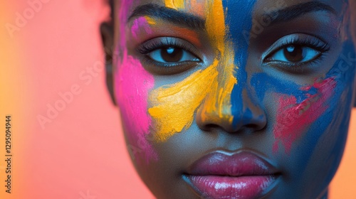 woman, face, paint, colourful, art, portrait, beauty, expression, creativity, closeup, model, vibrant, skin, lip, eye, aesthetic, artistic, fashion, make-up, photo, design, style, emotion, culture, individuality, identity, youth, canvas, bright, creative, modern, contemporary, elegance, inspiration, visual, stunning, striking, unique, high-coloured, bold, playful, expressive, lifestyle, portraiture, personality, allure