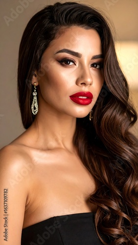 woman, portrait, make-up, elegant, coiffure, beauty, fashion, glamour, gorgeous, attractive, stylish, beautiful, confident, charming, sophisticated, posh, red, lip, eye, hair, jewellery, closeup, studio, light, dark, style, attraction, perfection, glamourous, stunning, female, pretty