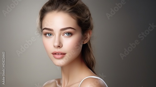 closeup portrait of a young brunette woman with a studio background - mockup template for skincare/beauty products/ads (generative AI)
