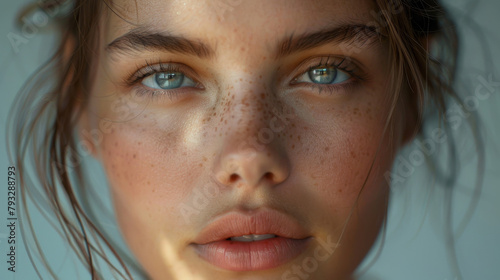 portrait, missy, freckle, blue eye, natural makeup, closeup, beauty, caucasian, female, natural look, facial features, cosmetic, look, youth, elegance, simplicity, skincare, photo, gentle, serene, head shot, minimalist, wellness, fresh, subtile, calm, detailed, complexion, delicate, femininity, model, studio shot, clean, face, visualisation, flawless, lip