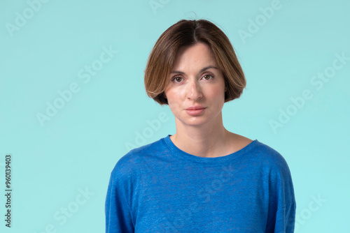 attractive, background, beautician, beautiful, beauty, beauty parlour, blue, blue background, care, clean, closeup, copy space, cosmetology, eye, face, fashion, fashionable, female, free space, fresh, girl, hair, happy, health, healthy, highlighted, isolated, lip, make-up artists, model, natural, peeling, portrait, posing, pretty, pretty woman, serious, skin, skincare, studio, white, woman, woman, young