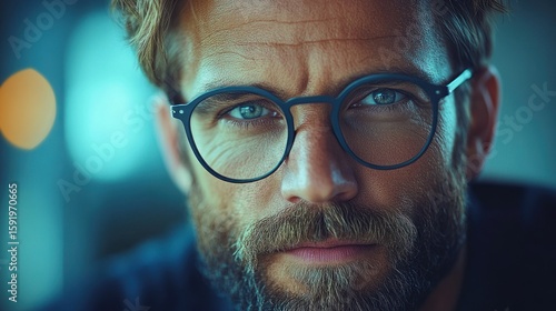 man, goggles, beard, closeup, portrait, face, eye, blue, stylish, fashion, modern, attractive, photogenic, accessory, style, sharpened, detail, photo, confident, serious, male, adult, casual attire, closeup, photo, close, eye, hair, looking