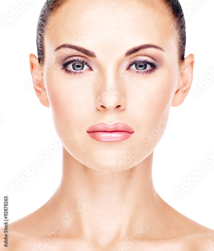 beauty, face, skin, woman, beautiful, portrait, girl, young, pretty, isolated, health, care, clean, 1, caucasian, white background, skincare, white, adult, fresh, attractive, brunette, pose, front view