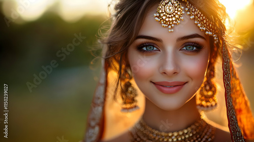 Close-Up Portrait Woman Traditional Chinese Makeup Futuristic Accessories Copy Space Right