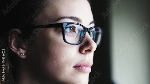 Closeup profile view of a woman with glasses