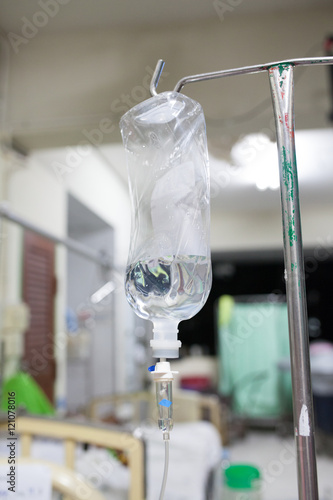 Closeup saline (IV) drip for patient in hospital.