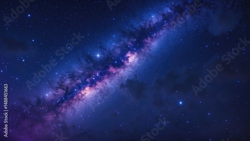 Close-up shot of a galaxy containing stars and interstellar dust in the universe, achieved through long exposure imaging with grain.